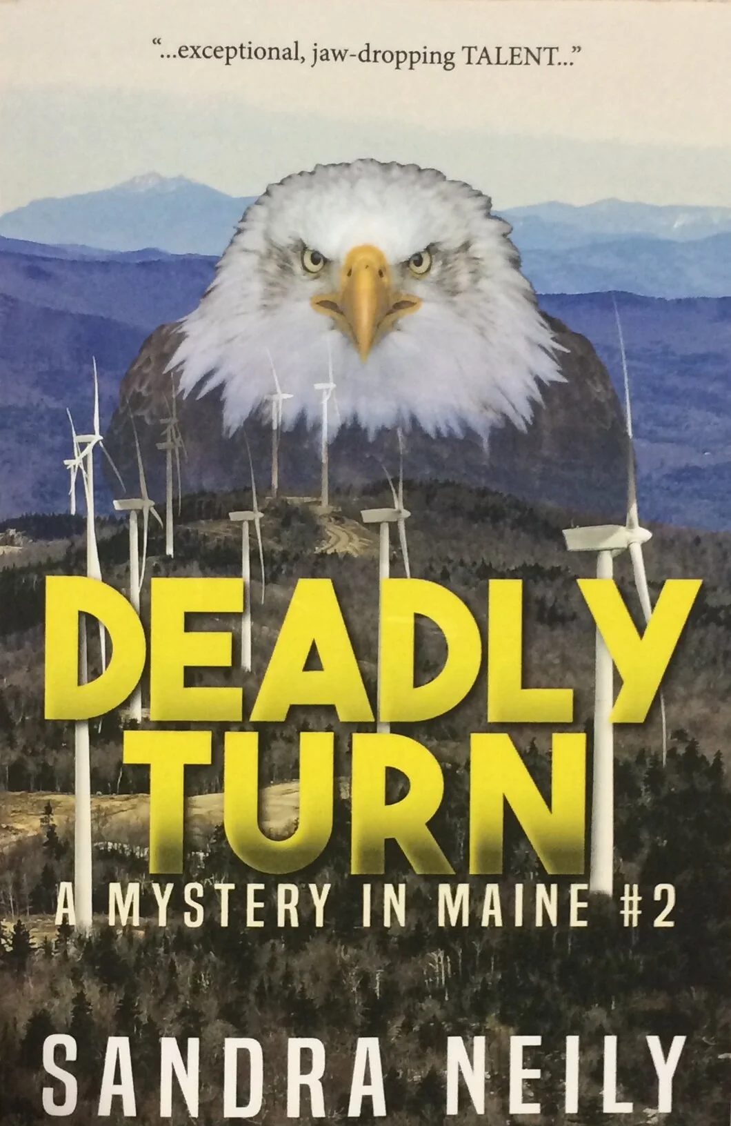 “My research for ‘Deadly Turn’ included deep dives into the lives of bats and eagles, visits to Maine wind-power facilities (operational as well as under construction), and attending a Wind & Wildlife Conference with wind-power industry representatives and wildlife biologists. It was a fascinating journey across Maine.”